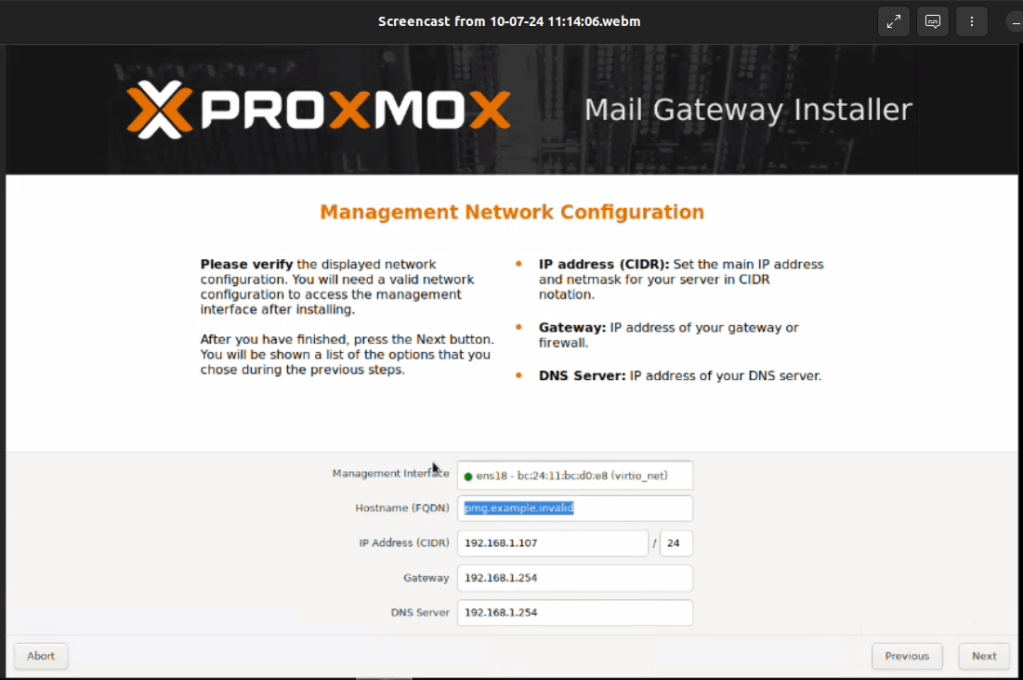 - Insert your management interface,Hostname,IP Address,Gateway, and DNS Server